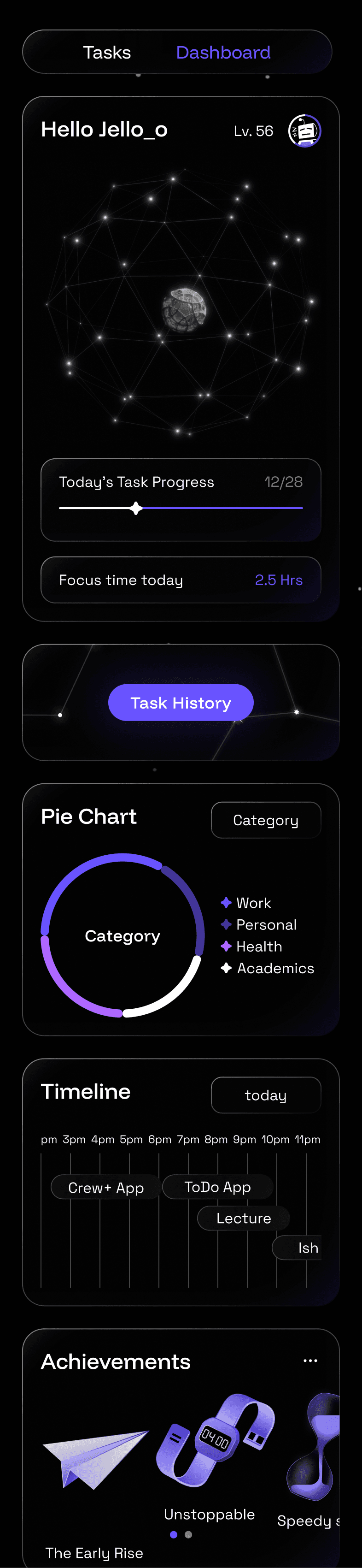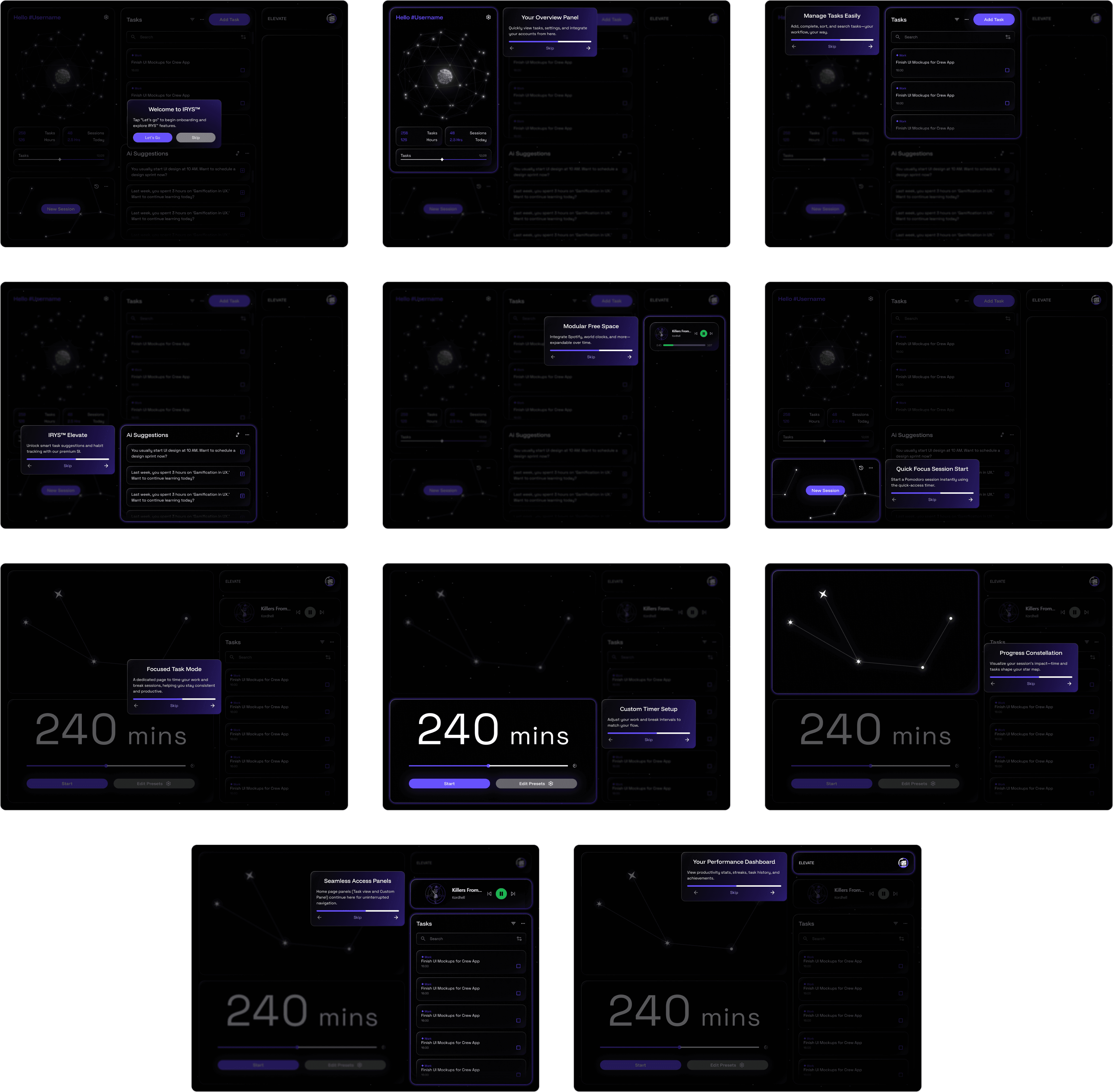 IRYS was built to bring structure and reflection into one space. It helps users organize tasks, track habits, and understand their work patterns through adaptive feedback. The goal was to design a system that supports intentional, lasting productivity instead of short bursts of efficiency.