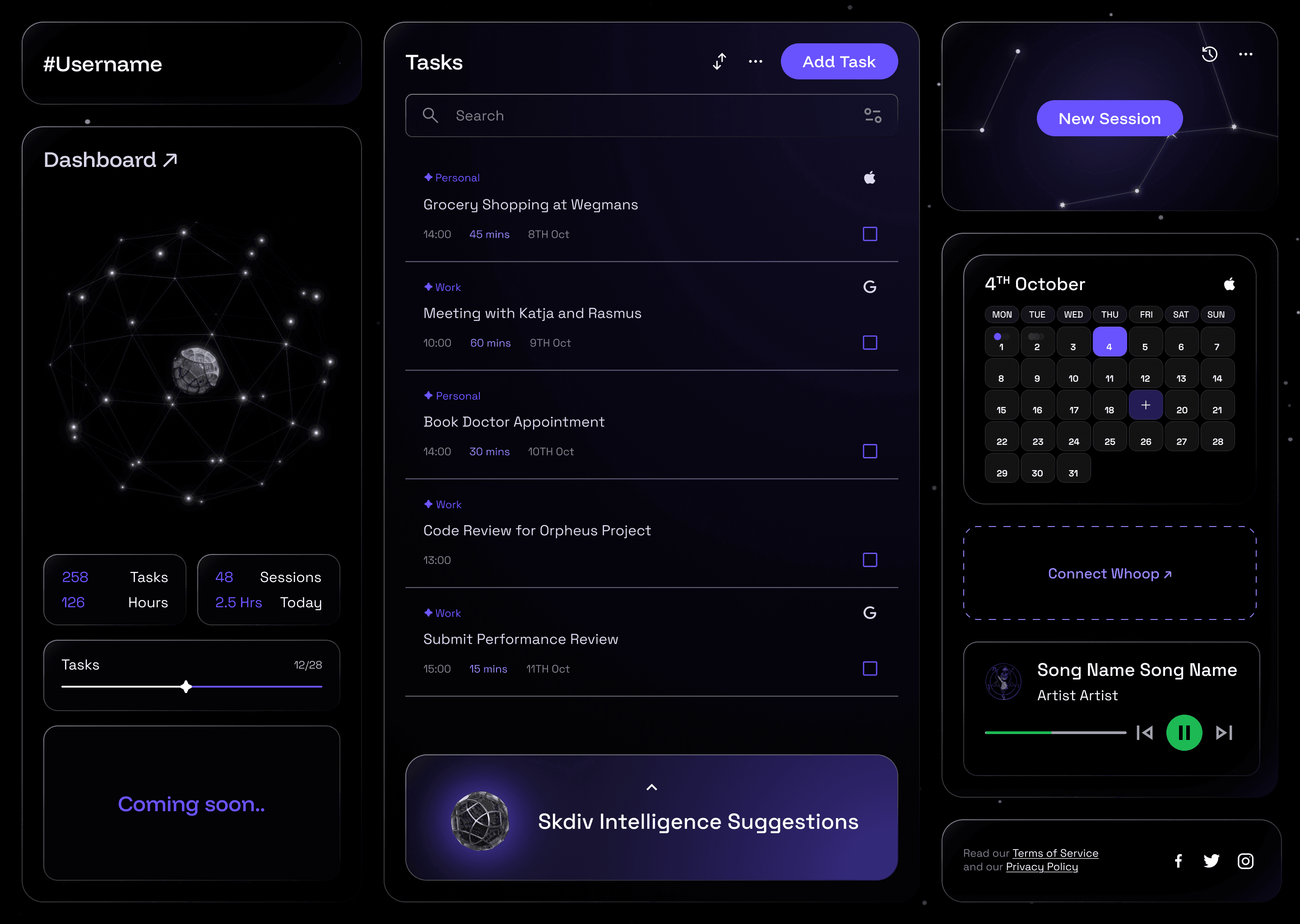 Modular Dashboard with spotify whoop and calendar integrations